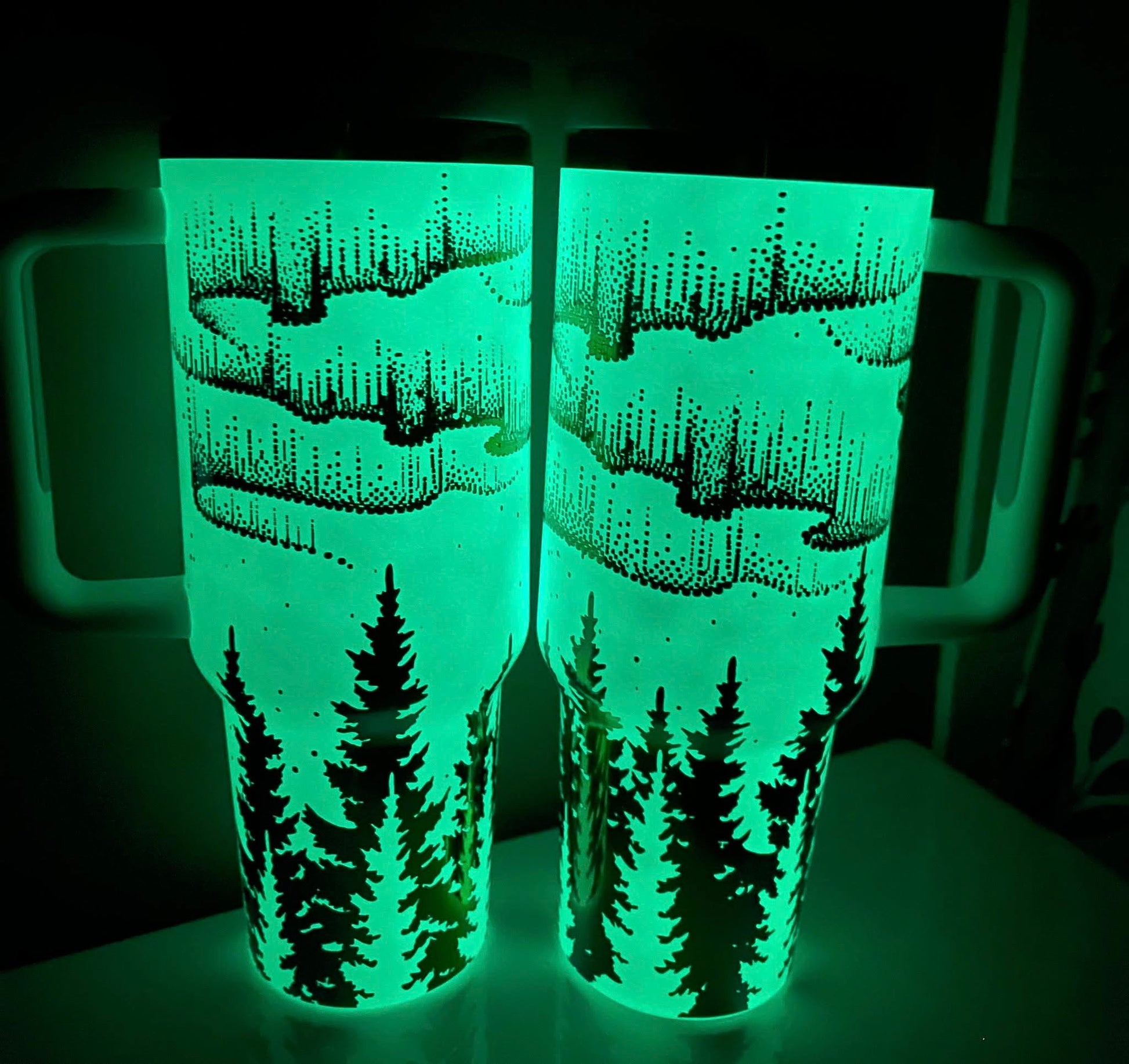40 oz White/Rainbow/Glow in the Dark Engraved Tumbler